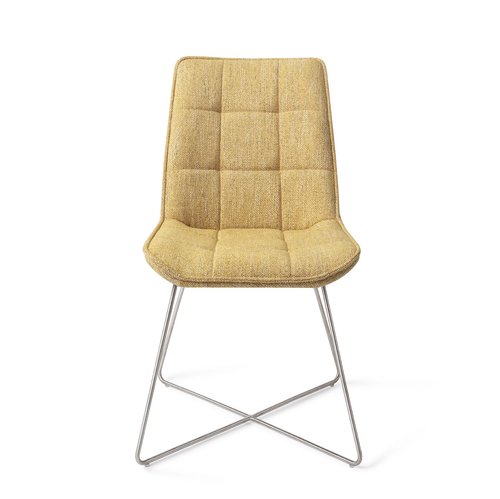 FavorietDe Ota eetkamerstoel is een van onze favorieten. Het feit dat de Ota stoel geen armleuningen heeft, oogt ze rank en vrij zodat je een extra stoel moeiteloos aan de eettafel schuift, zonder een zware eethoek te creëren. Desalniettemin hoef je geenszins aan comfort in te boeten want ondanks de slanke uitstraling, biedt de zitting ruime steun en fijn comfort. De Ota is niet voor niets een favoriet. Subtiele kleurtonen De zitting is bekleed met een hoogwaardig polyester en acryl met een kenmerkend 9-vaks patroon in zowel de rugleuning als het zitvlak. De stof is een melange van geeltonen die zowel als subtiel als gewaagd gezien kan worden. De Ota eetkamerstoel combineer je bijzonder goed in een modern en licht interieur. Kies je eigen onderstel Combineer de Ota eetkamerstoel met een onderstel van jouw keuze! Zo customize je je eigen stoel: kies een van de kleurvarianten en combineer jouw favoriete zitting met een van veertien mogelijke onderstellen. Je hebt de keuze uit een Cross frame - speels lijnenspel, Turn frame - 180 graden draaibaar met auto-return functie, of Beehive frame - gespiegeld hexagoon. Ieder onderstel is vervaardigd uit hoogwaardig metaal en is verkrijgbaar in de finish mat zwart of wit, mat RVS, mat gold en mat rose. De Ota eetkamerstoel is eenvoudig te monteren.