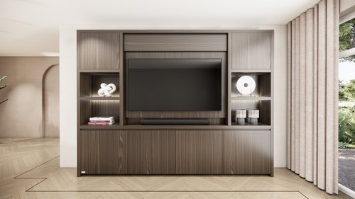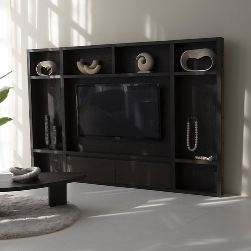 Cinewall Franklin Queen-Size (280-320 cm) heeft een moderne look die in diverse interieurs goed tot zijn recht komt. Door zijn combinatie met praktische opbergruimte biedt dit model de perfecte mix tussen looks en functionaliteit. In de open vakken zijn LED spots verwerkt welke met een dimbaar systeem zijn af te stellen op ieder moment van de dag. De cinewall wordt gemaakt van eiken materiaal, dit zorgt voor een warme, natuurlijke uitstraling. Jij kiest vervolgens de afwerking die perfect past bij jouw interieur. Luxe Cinewall Op Maat Altijd al gedroomd van jouw eigen thuisbioscoop? Maak je droom werkelijkheid met een cinema wall van PUUUR. In de open vakken is ruimte voor je favoriete accessoires en achter de deuren is genoeg ruimte om spullen op te bergen. Elke cinewall bevat een cinepaneel in het midden van 200 cm, aangevuld met 2 vakkenkasten deze samen maken de cinewall compleet. De cinewalls zijn in verschillende maten beschikbaar. Kies de afmeting welke het beste past binnen jouw interieur en ontwerp je droommeubel op maat. In onze cinewalls passen tv's van 55 t/m 85 inch. Zit jouw gewenste ontwerp of afmeting er niet tussen? Neem dan contact op met onze klantenservice. Onze cinewalls zijn verkrijgbaar in de volgende maten: - Queen-size (280-340 cm) - King-size (350-410 cm) - Royal-size (420-480 cm) - Superior-size (490-550 cm) Doordat wij de productie volledig in eigen beheer hebben, kunnen wij een korte productietijd garanderen en dus een snelle levering. Kleurstalen Wij begrijpen dat je de kleur van het meubel graag in je eigen interieur wilt bekijken. Daarom is het hier mogelijk om onze kleurstalen te bestellen. Cinewalls met haard Een cinewall op maat kan perfect worden gecombineerd met een elektrische haard. Een elektrische haard is een ideale uitkomst wanneer jij geen rookkanaal of gasaansluiting beschikbaar hebt in de woning. Daarnaast geven deze een gezellige sfeer aan je interieur en bevatten diverse haarden ook een verwarmingssysteem, handig voor de koudere dagen! Montage en kabeldoorvoer Een Cinewall is een meubel waarin zowel een televisie, soundbar, elektrische inbouwhaard en verlichting gemonteerd kunnen worden. Bij het bestellen van een cinewall op maat moet er daarom rekening gehouden worden met montage en kabeldoorvoer. - Het is belangrijk dat er minimaal één stroompunt of stopcontact bij de Cinewall aanwezig is. - Houd er rekening mee dat alle bekabeling m.b.t. TV / Soundbar / TV kastje zoals HDMI of stroomkabels vooraf aanwezig zijn. - Standaard houden wij rekening met een kabeldoorvoer in het midden van de achterwand. Deze wordt via een kanaal begeleid naar het onderste deel van de Cinewall. Indien dit in jouw woonsituatie anders is neem dan contact op met onze klantenservice. - Voor specifiek maatwerk plannen wij een inmeetafspraak in. - Na bestelling nemen wij binnen 10 werkdagen contact op om de leverdetails te bespreken. Let op: Wij monteren geen TV en-/of soundbars en sluiten geen elektronische apparaten aan anders dan de verlichting van de Cinewall en/ of elektrische inbouwhaard. Experience Center Onze Cinewalls graag in het echt bekijken? Breng dan een bezoek aan ons Experience Center in Purmerend. Hier zijn diverse ingerichte ruimtes te zien en staat er altijd iemand voor je klaar met een passend advies. Klik hier voor meer informatie over ons Experience Center. Ons complete assortiment Naast Cinewalls hebben wij ook andere meubelen in onze collectie. Zo hebben wij ook bijvoorbeeld vakkenkasten, salontafels en tv-meubelen. Deze zijn ook geheel naar wens zelf samen te stellen. Combineer meerdere soorten meubels uit dezelfde serie en creëer een mooi geheel.