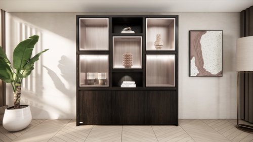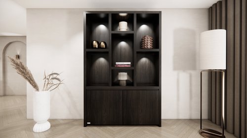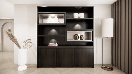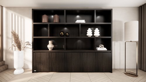 Als je op zoek bent naar een speelse vakkenkast, dan is onze vakkenkast Brooklyn in Royal-Size (230-260 cm) helemaal wat voor jou. Dit model creëert een perfecte combinatie van diverse open vakken met dimbare LED spots met onderin praktische opbergruimte achter de 3 deuren. Zo kies jij altijd welke accessoires je onder de aandacht wilt brengen en welke je liever afsluit, maar wel bij de hand wilt hebben. Het meubel wordt gemaakt van ons hoogwaardige eiken materiaal en naar jouw wens afgewerkt.Luxe vakkenkast op maatEen opvallend meubel in jouw woonruimte waarmee je net een extra persoonlijke en luxe uitstraling geeft. De design vakkenkast moet passen bij jouw stijl en interieur en dat is waar wij je bij PUUUR mee kunnen helpen. Met onze grote collectie aan vakkenkasten zijn de mogelijkheden eindeloos. Zo zit er voor een ieder altijd iets tussen en dat is waar het bij ons om draait. Wij helpen je vanaf stap één en komen samen tot het beste eindproduct.Bij PUUUR hebben wij de gehele productie in huis. Hierdoor behouden wij de hoge kwaliteit en kan jij je meubel geheel op maat laten maken. Onze vakkenkasten zijn verkrijgbaar in de volgende maten:- Double-size (80-120 cm)- Queen-size (130-160 cm)- King-size (170-220 cm)- Royal-size (230-260 cm)- Superior-size (270-300 cm)- Imperial-size (300-400 cm) KleurstalenEen kleur is belangrijk, zo maak jij het meubel passend bij je interieur en wordt alles een geheel. Ben jij benieuwd hoe een kleur in jouw interieur staat? Klik dan hier om kleurstalen te bestellen. VerlichtingJe vakkenkast op maat een extra touch geven? Dit doe je met LED spots, welke in de open vakken zullen worden toegepast. Zo kan jij de accessoires in de open vakken mooie uitlichten en dus extra onder de aandacht brengen. Je kunt de scherpte van het licht altijd aanpassen met het makkelijke dimsysteem welke in alle spots zit verwerkt.Experience CenterBenieuwd hoe onze vakkenkasten er in het echt uit zien? Breng dan een bezoek aan ons Experience Center in Purmerend. Hier zijn diverse ingerichte ruimtes te zien en staat er altijd iemand voor je klaar met een passend advies. Klik hier voor meer informatie over ons Experience Center. Ons complete assortimentNaast TV-meubelen hebben wij ook andere meubelen in onze collectie. Zo hebben wij ook bijvoorbeeld salontafels, sidetables en cinewalls. Deze zijn ook geheel naar wens zelf samen te stellen. Combineer meerdere soorten meubels uit dezelfde serie en creëer een mooi geheel.