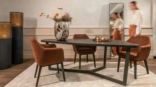 Modieuze stijl en comfort Geniet van stijl en comfort met de Hiroo eetkamerstoel, op maat gemaakt van hoogwaardig polyester met een fijne weefselstructuur voor duurzaamheid. Kies uit zeven chique tinten, van de ingetogen elegantie van Whisper Wheat tot de dynamische Groovy Garam. Bekend om zijn ruime zitplaatsen en comfort, past de Hiroo perfect bij elke moderne of Scandinavische setting, waardoor alledaagse diners veranderen in een luxe zitervaring. Verken ook de Hiroo bijzetstoel, een perfecte aanvulling om je Hiroo eetensemble compleet te maken. Elegante bekleding Kleed je eetruimte aan in moderne elegantie met de hoogwaardige, fijngeweven polyester bekleding van de Hiroo stoel. De gladde textuur en veerkrachtige stof beloven duurzaamheid en een zachte aanraking, waardoor de Hiroo een slimme keuze is voor zowel gezellige familiediners als verfijnde omgevingen zoals een kantoorruimte. Aanpassing van de basis: Personaliseer je Hiroo stoel met een basis die jouw stijl weerspiegelt. Of je nu de ingetogen verfijning van een eenvoudig ontwerp verkiest of het speelse karakter van een draaibaar frame, de Hiroo voldoet aan al jouw wensen. Elke basis is gemaakt van hoogwaardig metaal, wat zorgt voor stabiliteit en een strakke afwerking, terwijl de optie van 180 graden rotatie een vleugje speelsheid en gemak toevoegt aan jouw eetervaring. Met Hiroo wordt elke maaltijd een zorgvuldig samengesteld moment van moderne klasse.