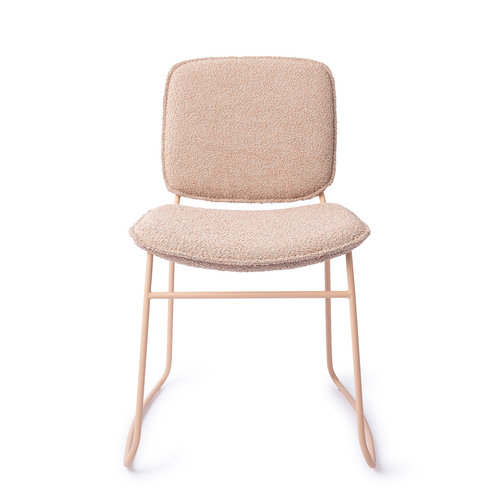 Verrassend simpel De Obu eetkamerstoel heeft een ogenschijnlijk simpel uiterlijk maar verrast in opvallende details en zitcomfort. Zo is de bekleding een bescheiden boucle in vier net zo bescheiden kleuren die heel goed onderling gemixt kunnen worden. Zet ze bij elkaar en je hebt echte eye candies die een genot zijn om naar te kijken. Laat je niet van de wijs brengen door het compacte formaat, want qua zitcomfort boet de Obu helemaal niets in. De licht buigende rugleuning biedt fijne steun en de stevige vulling in de zitting motiveert een actieve zit. Vier zachte kleuren De boucle stoffering heeft een samenstelling van 100% polyester en is erg weerbaar. Dit maakt het een duurzame stof die er mooi uitziet en ook nog eens zacht aanvoelt. De kleuren luisteren naar de namen Very Dromedary (beige), Icing on the Cake (off-white), Raccoon (grijs) en Blush Blush (zacht roze). De kleuren onderscheiden zich onderling met subtiele verschillen dus combineer ze gerust met elkaar! Wij zijn niet perse fan van mix & matching maar vinden het bij de Obu bijzonder charmant. De stof maakt deel uit van een duurzaamheidsprogramma waarbij minimaal gebruik van water en energie is gehanteerd. De duurzaamheid zit tevens in de levensduur van de stof en het feit dat er geen chemicalien zijn gebruikt in het maakproces. Rank & Recht Het frame van de Obu bestaat uit een stuk waaraan de rugleuning vastzit en is van mat zwart gepoedercoat staal. Het frame kenmerkt zich door het rechte, ranke postuur en de platte-cilindervorm. De voeten van de stoel zijn afgewerkt met gelijkvormige nylon beschermdoppen. Wij zijn fan van de Obu eetkamerstoel. Wat jij?