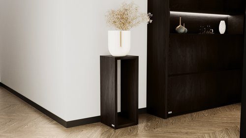 Zuil Gaia heeft een rechthoekige vorm bestaande uit 2 open vakken. Deze zuil geeft de meest rustige hoeken in je woning aandacht. De zuil is goed te combineren met diverse stijlen en biedt dubbele ruimte voor woonaccessoires. Het eiken materiaal heeft een zichtbare houtnerf waardoor de mat, mat-metallic of beits afwerking de sidetable de gewenste uitstraling geeft. Dit meubel is prachtig te combineren met bijvoorbeeld onze eettafels, dressoirs en wandkasten uit diverse series.